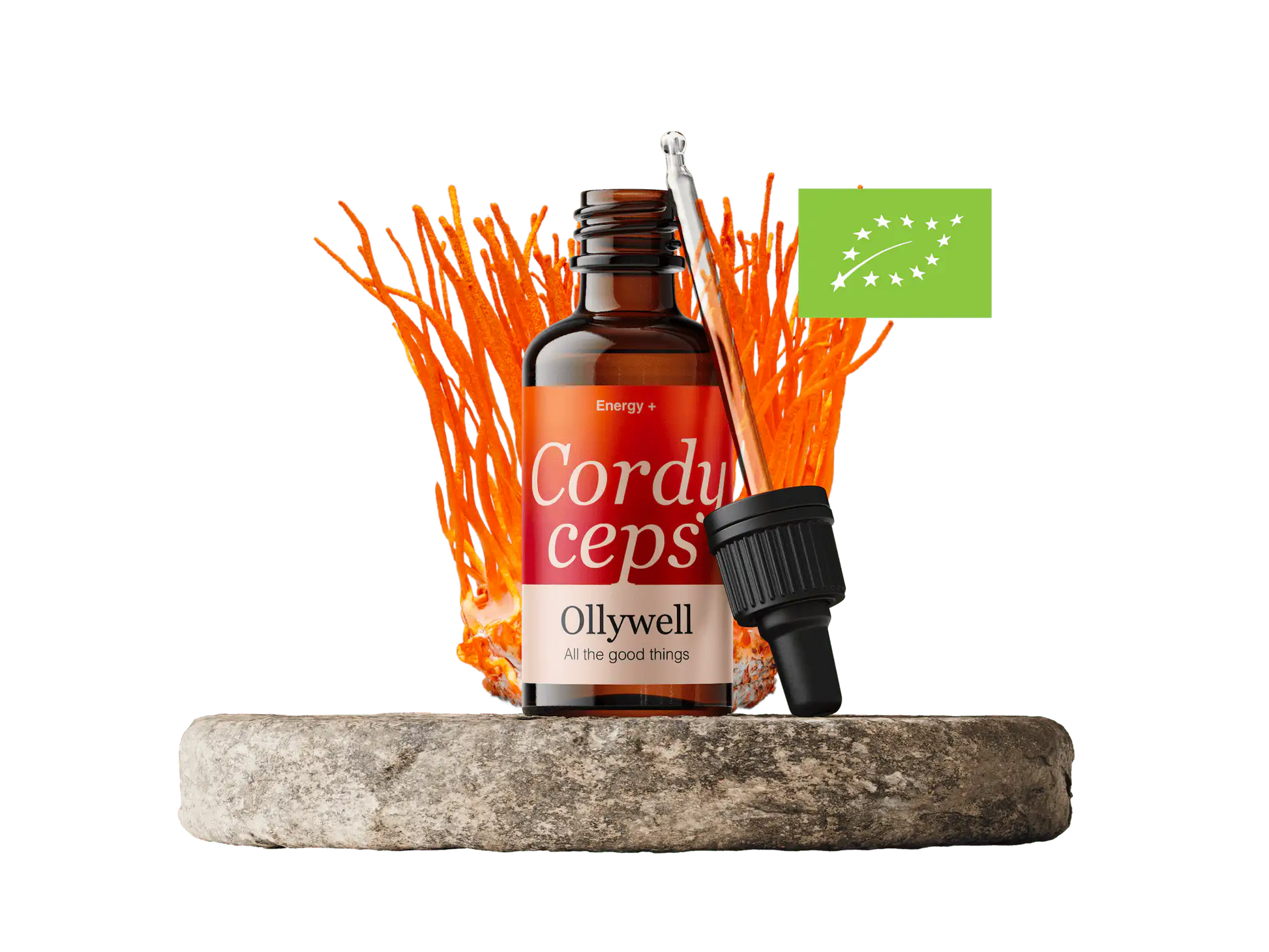 Champignon certifié biologique UE soutenant les niveaux d'énergie et la performance physique. Cultivé sans pesticides ni OGM dans des conditions contrôlées conformes aux normes biologiques rigoureuses de l'Union européenne.